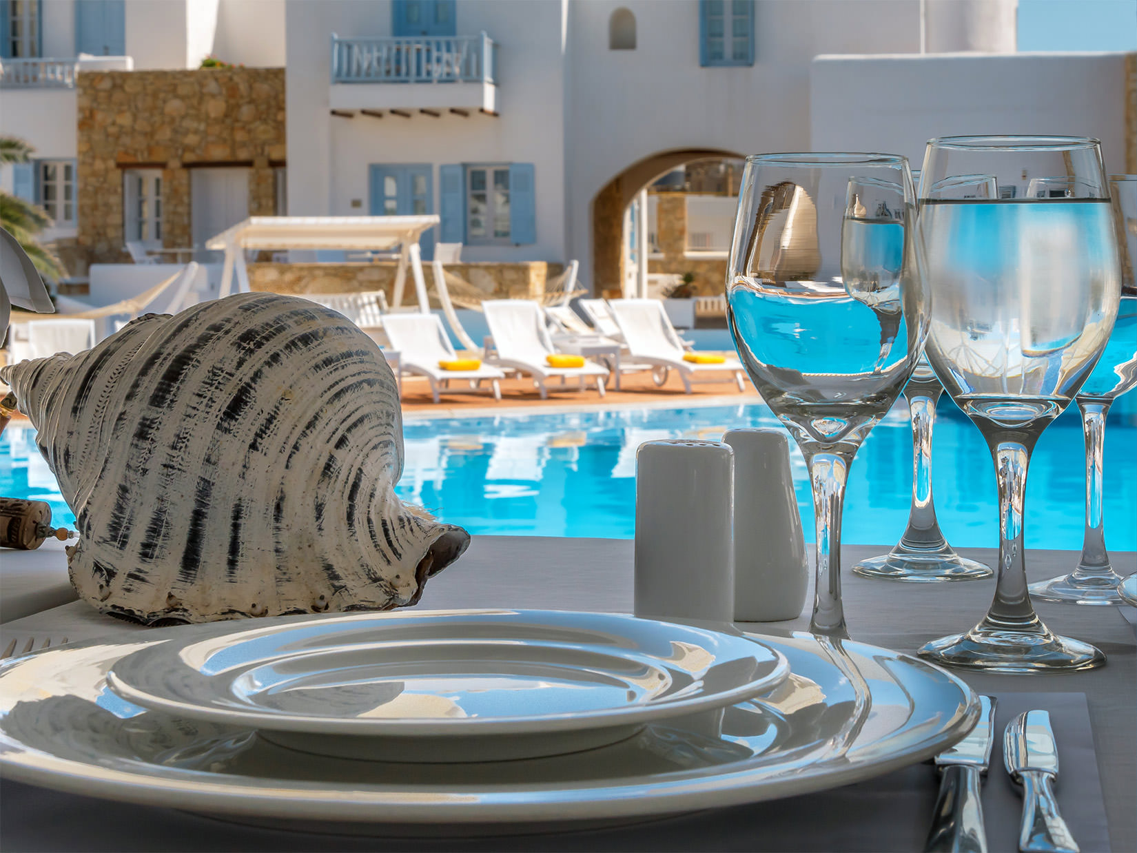 The 500 sqm. large swimming pool is set in the centre of the resort, providing an excellent opportunity for guests to swim in comfort. At the ‘Thalassa’ jacuzzi - pool bar, guests can enjoy cool refreshments and a variety of cocktails all day long.